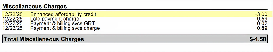 EEAP: It will be displayed as “Enhanced Affordability Credit” under “Miscellaneous Charges” on your bill.