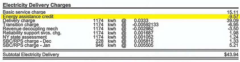 EAP: It will be displayed as “Energy Assistance Credit” under “Delivery Charges” on your bill.